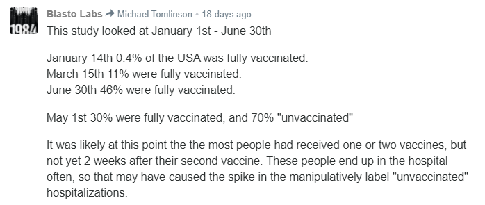 Of note, the paper does not address how the hospitalized became infected and does not claim the shots improve outcomes for the hospitalized. In fact, the authors expressly state “[w]e did not find any clear difference in the risk for ICU admission or in-hospital death between vaccinated and unvaccinated persons.” Public comments to the paper suggest many issues, including that the vast majority of the public was “unvaccinated” during the study period.