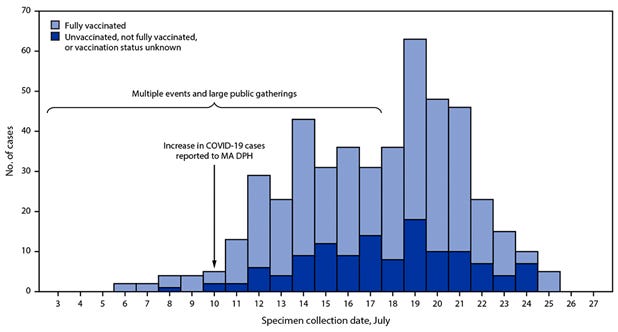 July 2021: Hundreds of fully vaccinated infected in Cap Cod, Massachusetts outbreak.